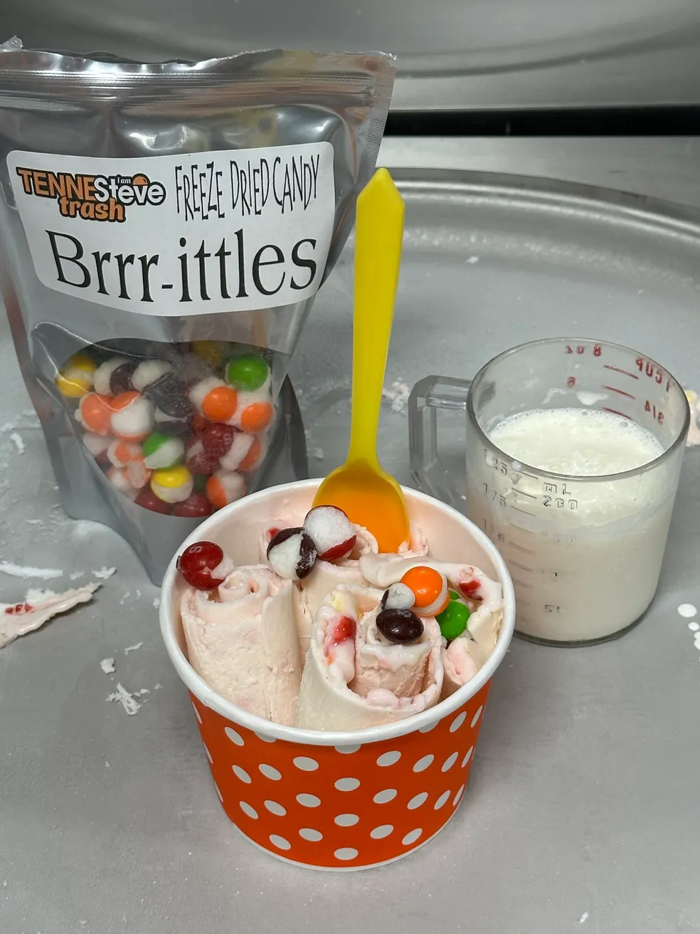Introducing TENNESteve Trash, an innovative ice cream infusion company that has taken the frozen dessert industry by storm with its unique and mouthwatering creations. At the heart of their menu is their groundbreaking dessert, freeze-dried candy infused rolled ice cream, which has captivated the taste buds of ice cream enthusiasts.   TENNESteve Trash was founded in 2023 by Steve, an ambitious entrepreneur. Inspired by his love for ice cream and a passion for experimentation, Steve embarked on a culinary journey to create a one-of-a-kind ice cream experience that would leave customers craving for more.   The star of the show, their freeze-dried candy infused ice cream, is a result of Steve’s dedication to pushing the boundaries of traditional ice cream making. Using cutting-edge technology and a creative flair, TENNESteve Trash has perfected the art of infusing premium ice cream with the intense flavors and textures of freeze-dried candies. The result is a harmonious blend of creamy, smooth ice cream with bursts of vibrant candy flavors, creating a delightful explosion of taste in every bite.